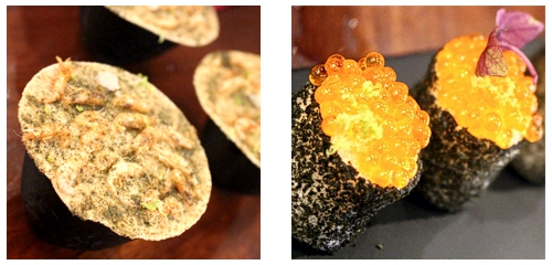 Tiempo ahora para otro superclásisco, con la air-baguette mini de queso manchego en espuma. Crujiente, ligero, sabroso, ejemplo de una buena aplicación del caviar de aceite -ojo a los fans de Adrià cocinillas: si no tiene sentido añadir aceite en este formato, no hay que aplicarlo, no mejora el plato, solo lo encarece-.