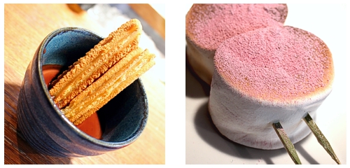 Los churros con chocolate, en ración moderada -un par de ellos-, nada aceitosos y, por tanto, mucho más ligeros de lo habitual -¿horno en lugar de freidora?-.